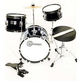 Look at these amazing features: 12" Bass Drum with 6 lugs 8" Hanging Tom with 4 Lugs 8" Snare Tom with 4 Lugs Bass Drum Pedal 8" Cymbal Drummer's Throne Sticks Included Color: High Gloss BLACK -- This will make a perfect gift for any spiring young musician! This set is brand new and in the factory carton and we are an authorized Gammon retailer! Comes in one easy to wrap box!! Recommded ages 3 - 6/7, depending on size. Bass drum is 12" (1 foot) high