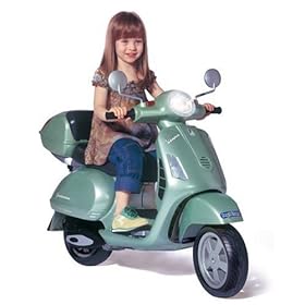 Only the best for your child! Picture the most stylish ride around, with your little one beaming in the driver's seat. This licensed Vespa Scooter has the power of a 12 volt rechargeable battery that propels it at 2 1/2 or 5 mph, and it stops quickly with its rear brake. Onlookers will marvel at the realism of the Vespa's rear storage box, rear view mirrors and vinyl capped non-skid wheels. Meanwhile, child riders delight at the glove box, working headlight, horn, flashing hazard lights, and electronic engine sounds. 12-Volt rechargeable battery and recharger included