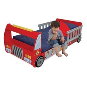 KidKraft Firefighter Bedroom Set. Toddler - sized furnishings for your little hero! Every little kid dreams about being a hero... what better place to do the dreaming than a room decked out with super-cool Firefighter-themed furniture! Fire Truck Toddler Bed: Fits all standard-sized crib mattresses for a fun and easy transition from the crib to a bed. The low-to-the-ground design and ladder guard rails keep your junior fire marshall from falling out of the truck at night. Great for kids that are too big for the crib and too small for a regular-sized bed! Made with fun Fire Truck silk-screen details and a special storage compartment in the front for toys, clothes or games. Stoke your child's creative fire! Order Now! AVAILABLE SEPARATELY: KidKraft Fire House Bookcase KidKraft Hydrant Toddler Table - word search in our Store for 'KidKraft'. KidKraft Fire Truck Toddler Cot. Mattress and bedding sold separately.