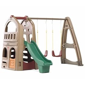 Kids will love exploring this multi-sided climb, slide and hide activity gym with two swings. In the playhouse, the top level features a roomy deck leading to large 5.5' slide that can easily be attached to the Step2 Big Splash Center, not included. Playhouse also comes with a kid-sized door and crawl-through portals. Swing Extension features two adjustable swings with high sides for security.