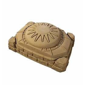 This versatile sandbox/planter combines outdoor textures and nature's colors to offer a contemporary look in today's neighborhoods. The warm sandstone color and stone boulder textures look realistic and feature four molded-in cornerstones which provide seating. The friendly sunshine lid motif is tastefully inviting, and the lid protects sand from weather and pets. The sandbox holds 200 pounds of sand and comes fully assembled.