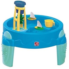 The falling water action from this WaterWheel Play Table encourages creative exploration with cause and effect learning. This imaginative water play center encourages hours of outdoor fun. Pour water into the wide funnel, and activate the water wheel which then spills into the inner and outer harbors. Two molded-in sections function as canals, boats, lakes, harbors and more. An elevated design keeps water at toddler level and also keeps ground dirt clear of water and mud from forming on children's feet. Accomodates up to three children to encourage group play. Two built-in drain plugs allow for easy water removal.